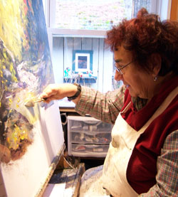 «I paint everything I like», a say that is translated in her nature lanscapes by the strong contrast in colors. All year round, her passion is at work.